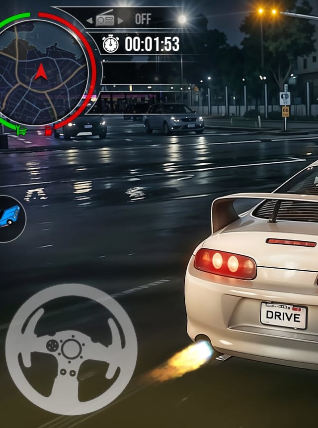 - Night drifting feel: Nail handbrake flicks, hold long slides, and light up corners as neon reflections streak past your windows.