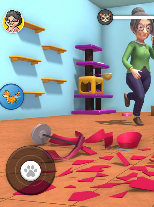 Mad Cat Simulator: Prank Granny is exactly what it sounds like, a goofy little chaos game where the player is a troublemaking cat sneaking around Granny’s house and wrecking her day. It plays like a light stealth prank-a-thon. Each room is basically a playground of stuff to push, scratch, hide, or break. Knock a vase off the shelf, stash her slippers somewhere weird, spill water on the floor, then wait for that over-the-top reaction when she notices. The loop is simple and fast, move to an objective, mess with an object, avoid getting spotted, repeat. Granny will patrol and grumble, and if she catches the cat, it is back to try again. Controls are straightforward, jump, scratch, and shove things around, with little challenges layered in so it does not feel random.
